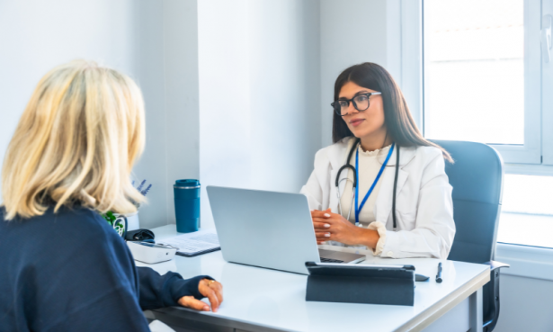 лекар и пациент разглеждат документ